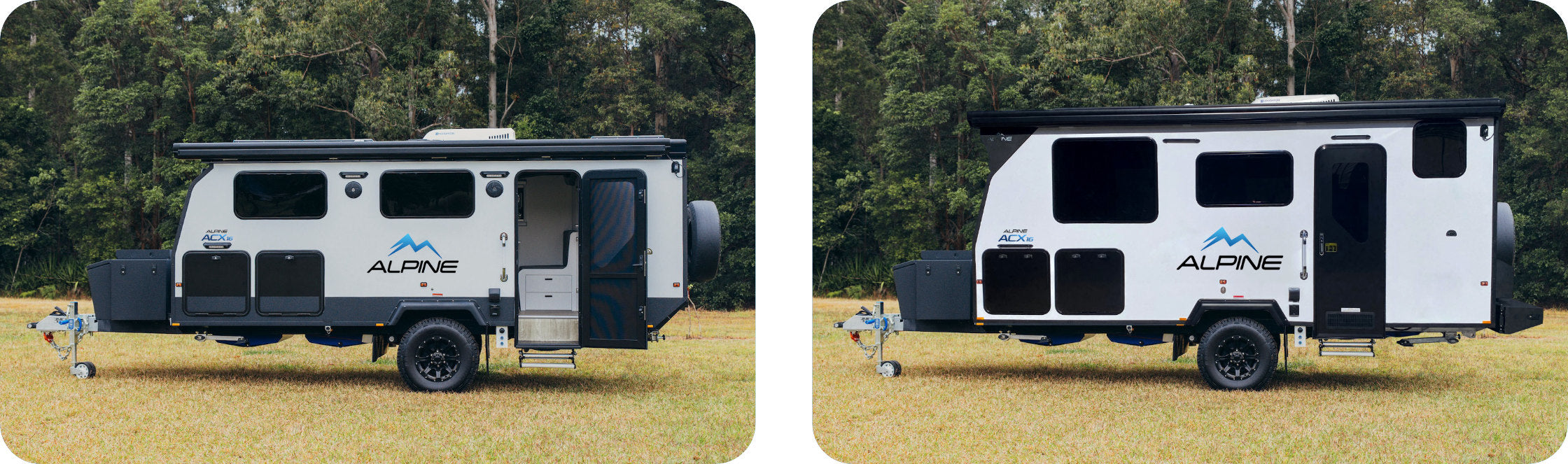 Both feature Alpine’s signature composite construction, full ensuite, premium external kitchen, Cruisemaster ATX airbags suspension, and up-to 900kg of payload.