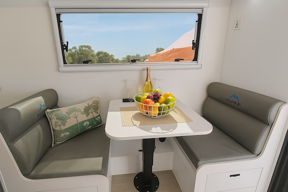 This full-height dual axle hybrid is engineered for serious off-road adventures, built on a hot-dipped galvanised chassis with dual axle Cruisemaster ATX airbag suspension, and built in ALPINE’s lightweight structural composite body for unbeatable durability and insulation. Discover a refined interior layout featuring a full rear ensuite, queen island bed with walk around sides, and ample storage throughout. Whether it’s a quick weekend escape or an extended off-grid journey, the EXPLOR delivers the right mix of practicality and comfort in every detail.