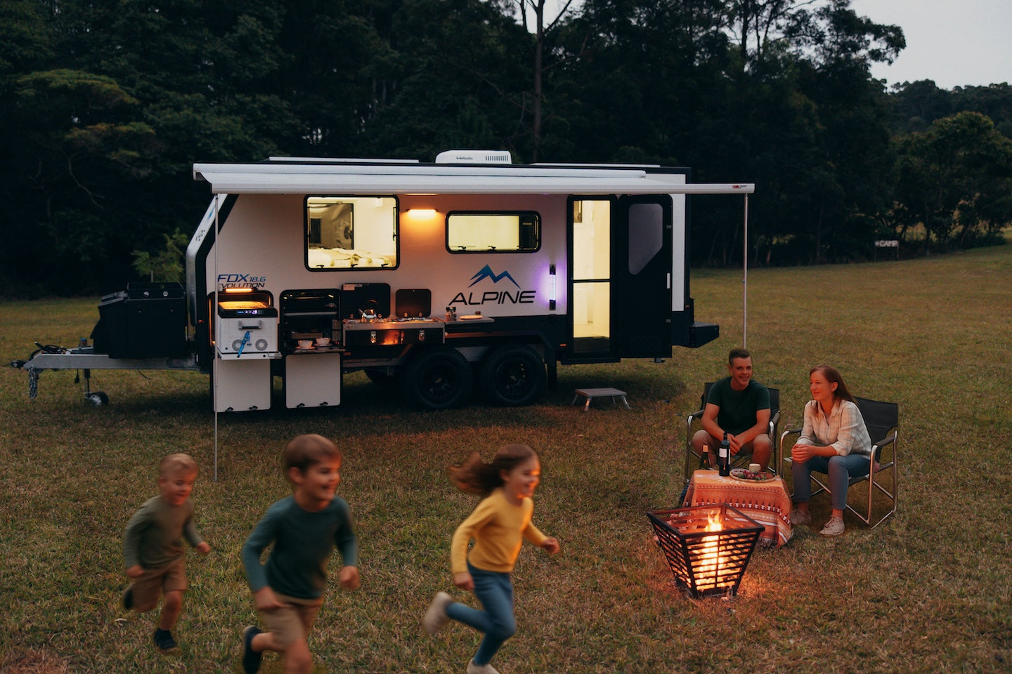 Designed for adventurous families who refuse to compromise, the ALPINE FAMILY is available across three premium models: ELEVATE (Hybrid Pop-Top), EXPLOR (Hybrid Full-Height), and EVOLUTION (19.6 Caravan). Each equipped with Alpine’s premium inclusions, serious off-road capability, and the comfort to make every destination feel like home.