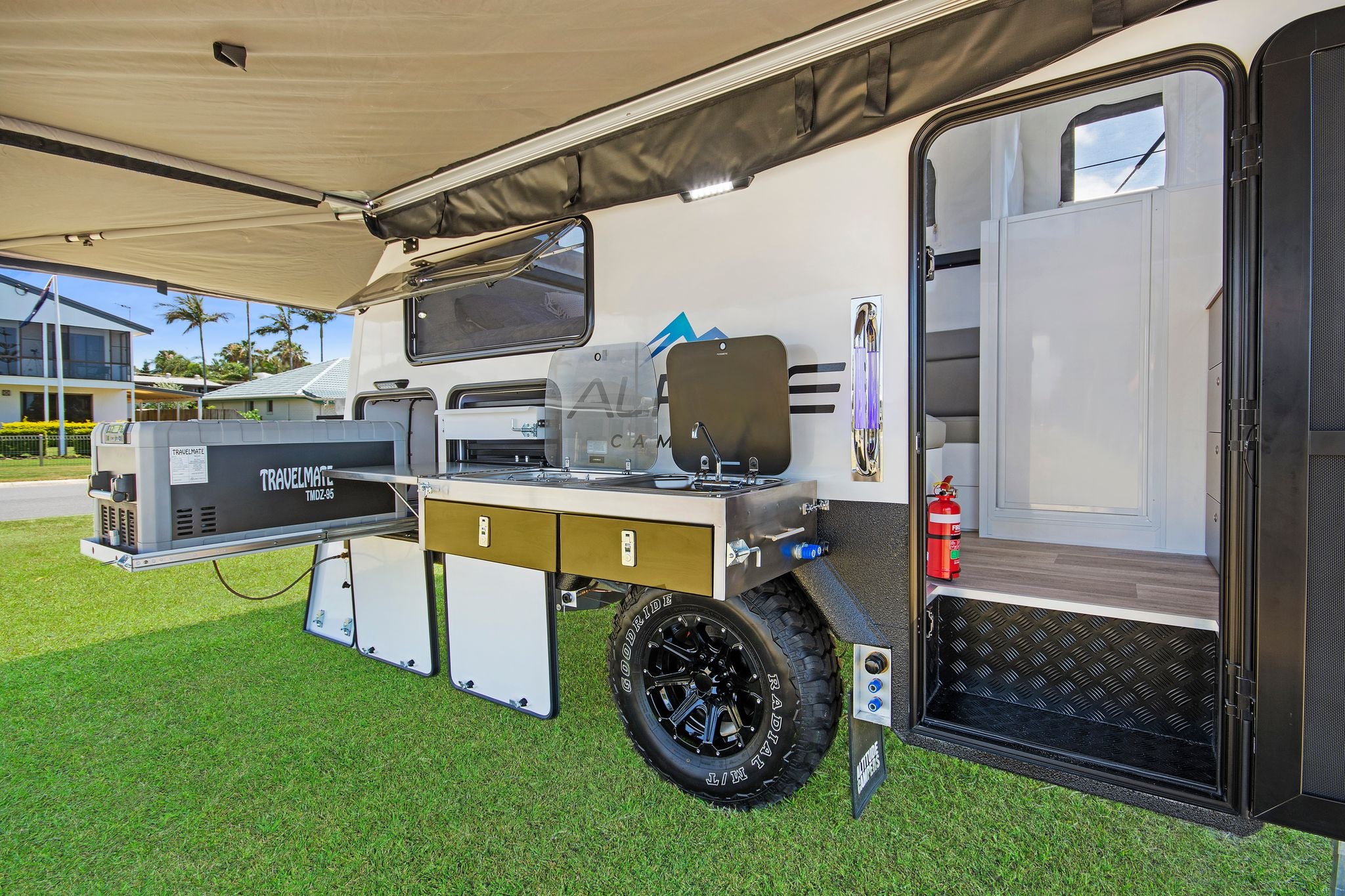 The ALPINE swing kitchen is built for function, maximising awning living space.