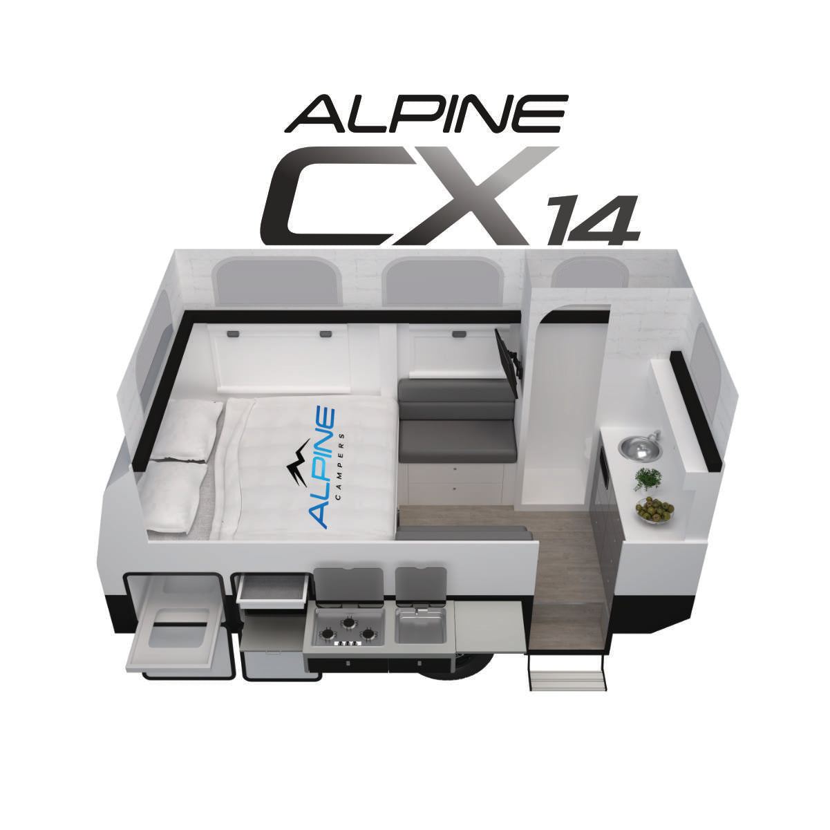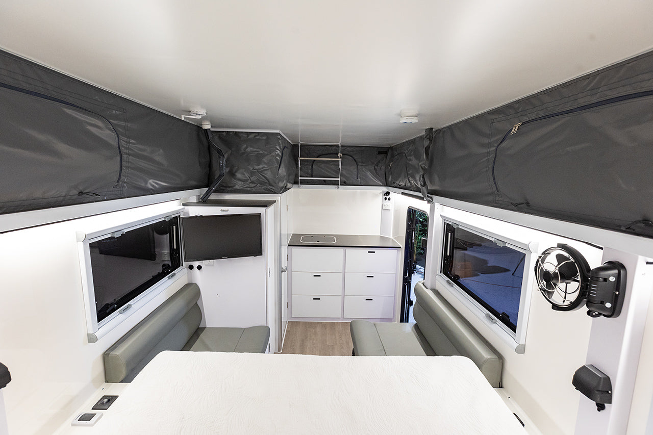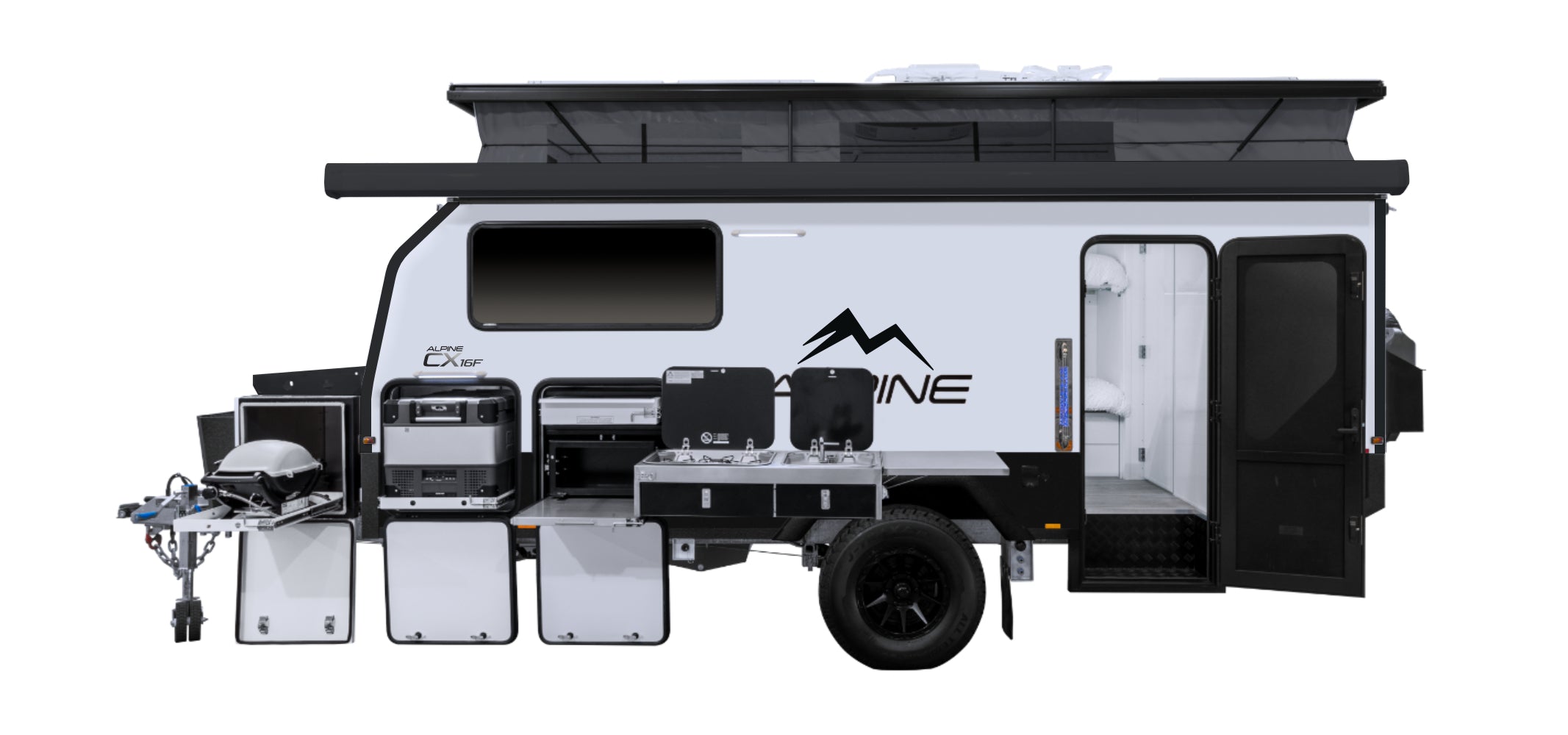 The ALPINE CX range offers the perfect balance of affordability and adventure. Built tough with lightweight composite construction, high-capacity off-grid power, and essential comforts to give you a perfect balance of functional and affordable luxury.