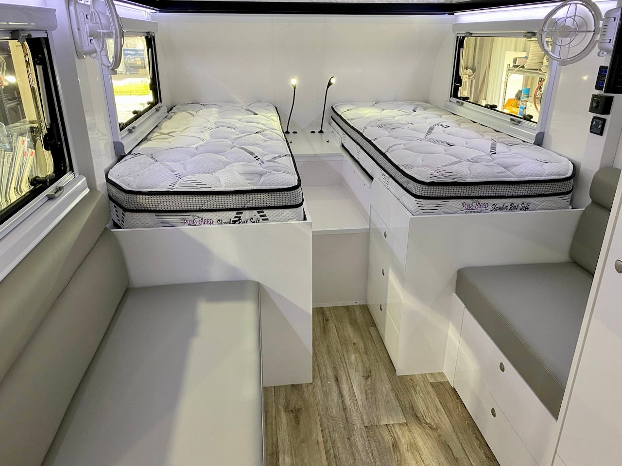 Luxury Meets Functionality: Features like full ensuite bathrooms, our famous swing-around kitchens, and comfortable sleeping arrangements make every trip feel like home.