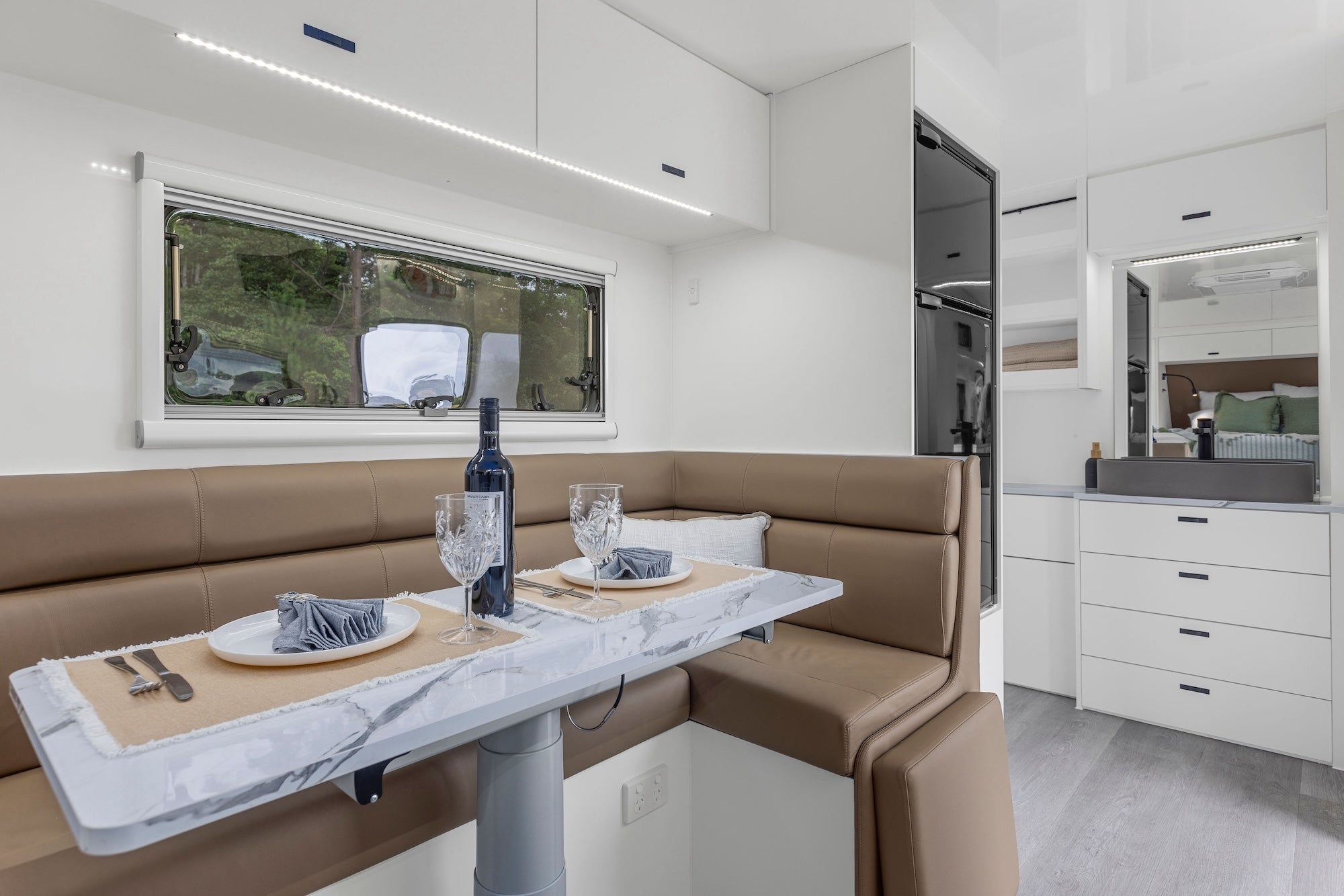 The EVOLUTION 19.6 is ALPINE’s flagship full-size caravan, designed for those who want it all - spacious living, high-end tech, and genuine off-grid performance without sacrificing comfort or strength.