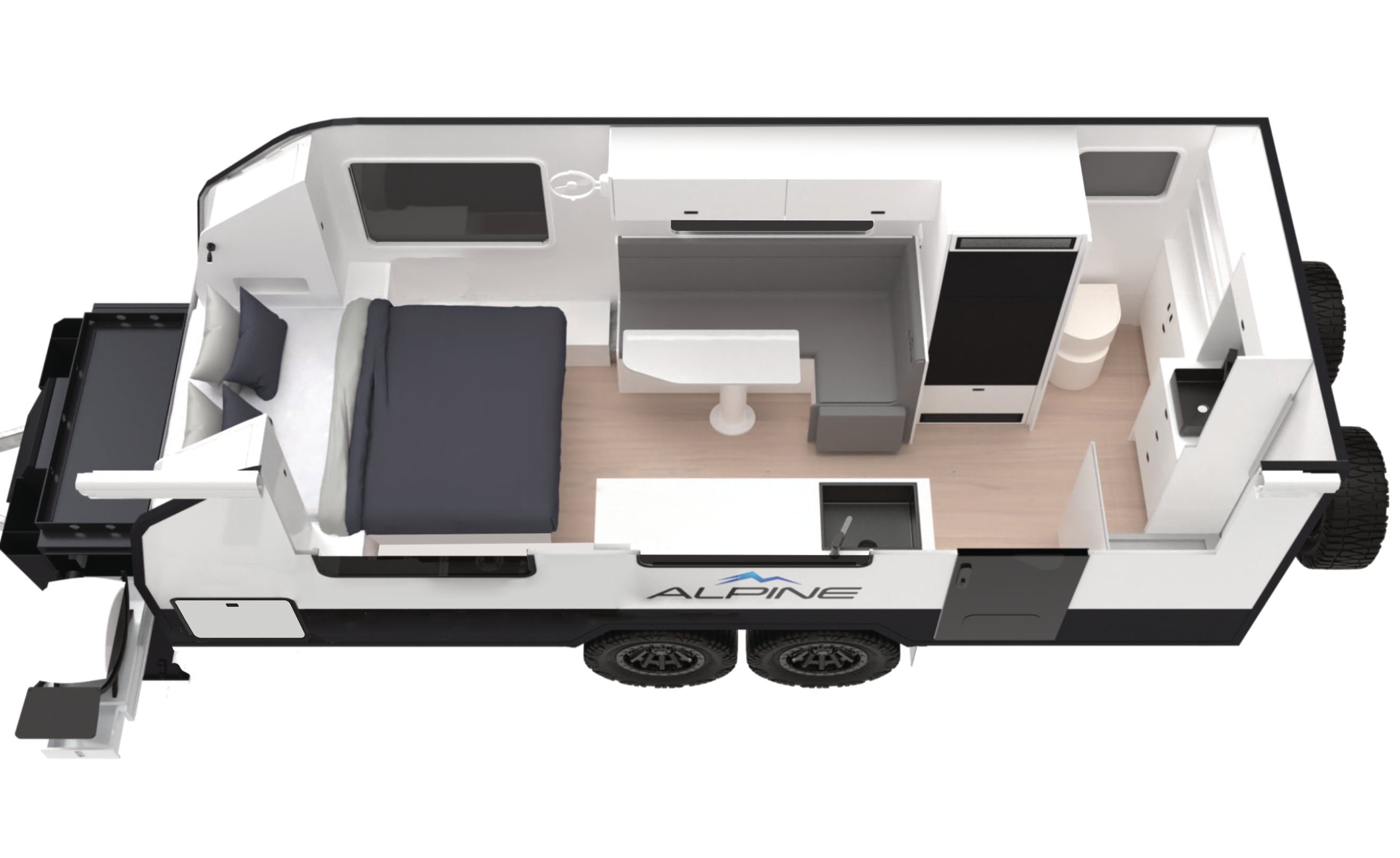 * Upgrade to ALPINE's signature external kitchen and fridge slide is available - talk to sales